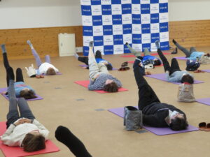 3月17日(火) 姿勢改善ピラティスを 開催しました。 ひざを抱えたポーズの 運動は難しそうでした💦😊
